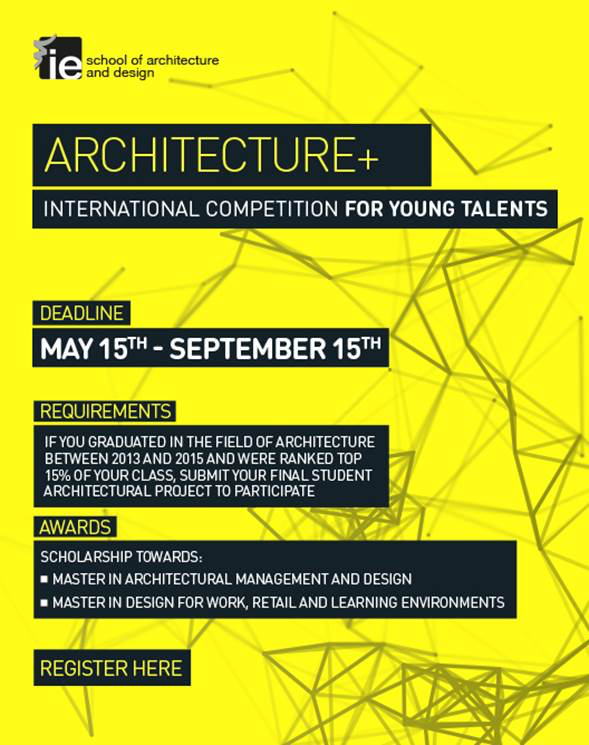 IE School of Architecture and Design anuncia su segunda ARQUITECTURA IE + PREMIO para los arquitectos jóvenes, tratando de atraer a los mejores talentos de la arquitectura de todo el mundo e invita a participar en el Master de IE en Diseño para el trabajo, entornos minoristas y de aprendizaje o el Maestro IE en Gestión de Arquitectura y Diseño a partir del próximo 02 2016.